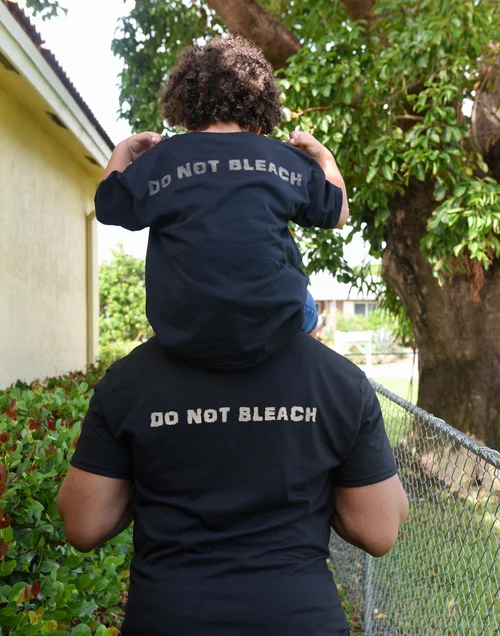 Do Not Bleach, is an interactive work that provides people of color a public opportunity to advocate and affirm themselves. The shirts are screen printed with the familiar laundry symbol for “Do Not Bleach” on the chest using discharge paste. This campaign is documented with portraits of individuals in the shirts. The work is displayed co-opting the language of department stores and fashion ad campaigns. Large scale photographic collages of these portraits showcase the breadth and variety that people of color live in everyday and challenges the “box” some prescribe.
